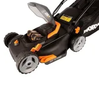 Аккумуляторная газонокосилка WORX WG743E Li Lawn Mower питается сразу от 2 батарей для длительного времени автономной работы. Машина с шириной обработки в 40 см подходит для участков площадью 300- 500 м2.