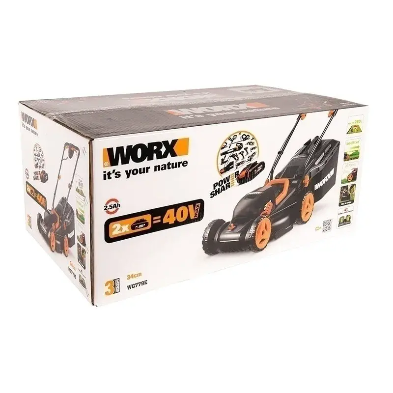 Газонокосилка WORX WG779E оборудована ножом, лезвия которого можно затачивать самостоятельно в соответствии с инструкциями по обслуживанию. Компактное хранение обеспечивается благодаря складной рукоятке и съемному травосборнику. Аккумуляторы совместимы с другими инструментами WORX и оснащены специальной платой энергоуправления с защитой от перегрева и глубокого разряда, что увеличивает время работы и продлевает срок их службы.