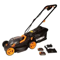 Аккумуляторная газонокосилка WORX WG779E позволяет без подзарядки скосить газонную траву на площади до 280 м2. Работает от двух Li-Ion аккумуляторных батарей 20 В емкостью 2,5 Ач, которые входят в комплект поставки вместе с зарядным устройством. Технология IntelliCut автоматически регулирует обороты в зависимости от нагрузки. Травосборник объемом 30 л оснащен индикатором наполнения. Ширина кошения составляет 34 см.