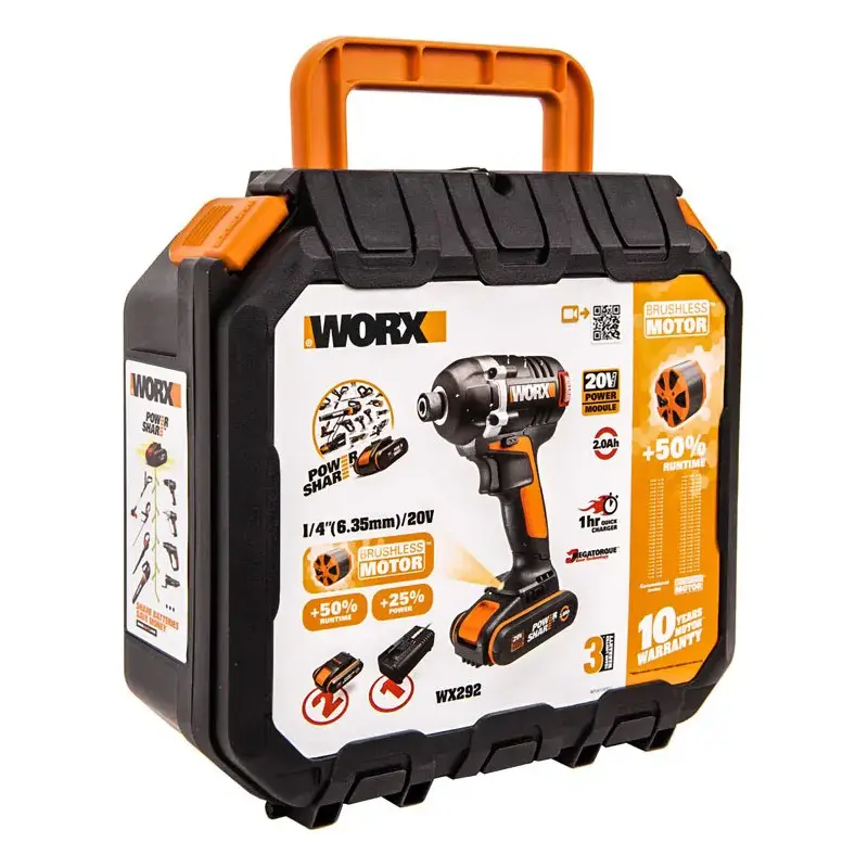 Аккумуляторный винтоверт WORX WX292 используется для сборки массивных конструкций благодаря жесткому крутящему моменту в 175 Нм и ударному механизму. Бесщеточный двигатель обеспечивает высокую производительность и длительный срок службы.
