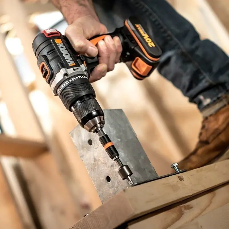 Быстрозажимной патрон шуруповерта WORX WX373 облегчает замену бит и сверл. Достаточно вручную открутить крепление, извлечь неподходящий аксессуар и установить новый. Все действия выполняются без ключей и отверток.