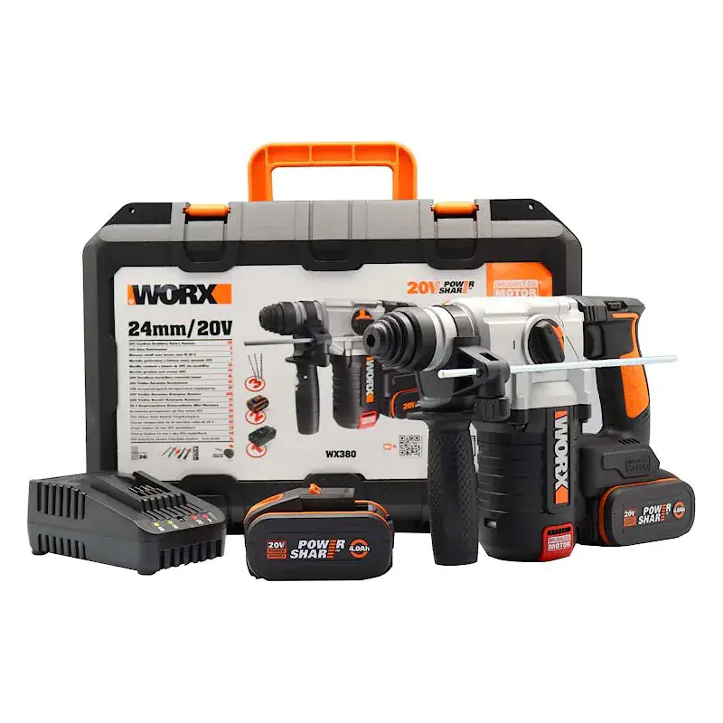 Аккумуляторный перфоратор Worx WX380 служит для выполнения различных задач, связанных со сверлением, долблением и завинчиванием саморезов. Энергия удара составляет 2,2 Дж, что позволяет разбивать кирпичную кладку и бетонные стены. Патрон типа «SDS PLUS» обеспечивает быструю смену оснастки. Инструмент работает от Li-Ion аккумулятора 20 В емкостью 4 Ач. Бесщеточный двигатель отличается повышенной мощностью и экономным расходованием заряда. Наибольший диаметр сверления в бетоне составляет 24 мм, металле — 13 мм, древесине — 27 мм. Перфоратор поставляется в прочном пластиковом кейсе для удобства переноски и хранения.