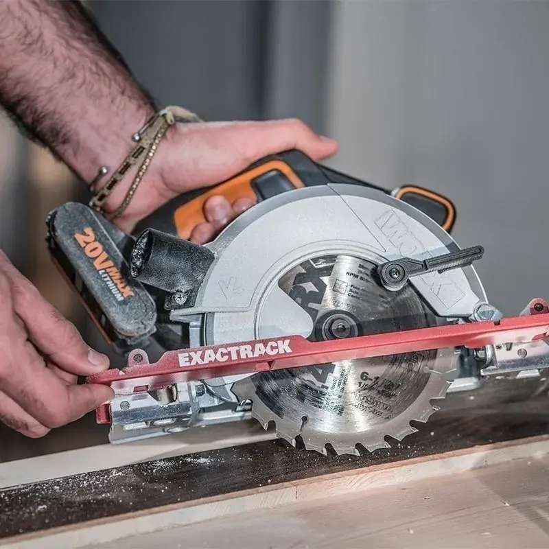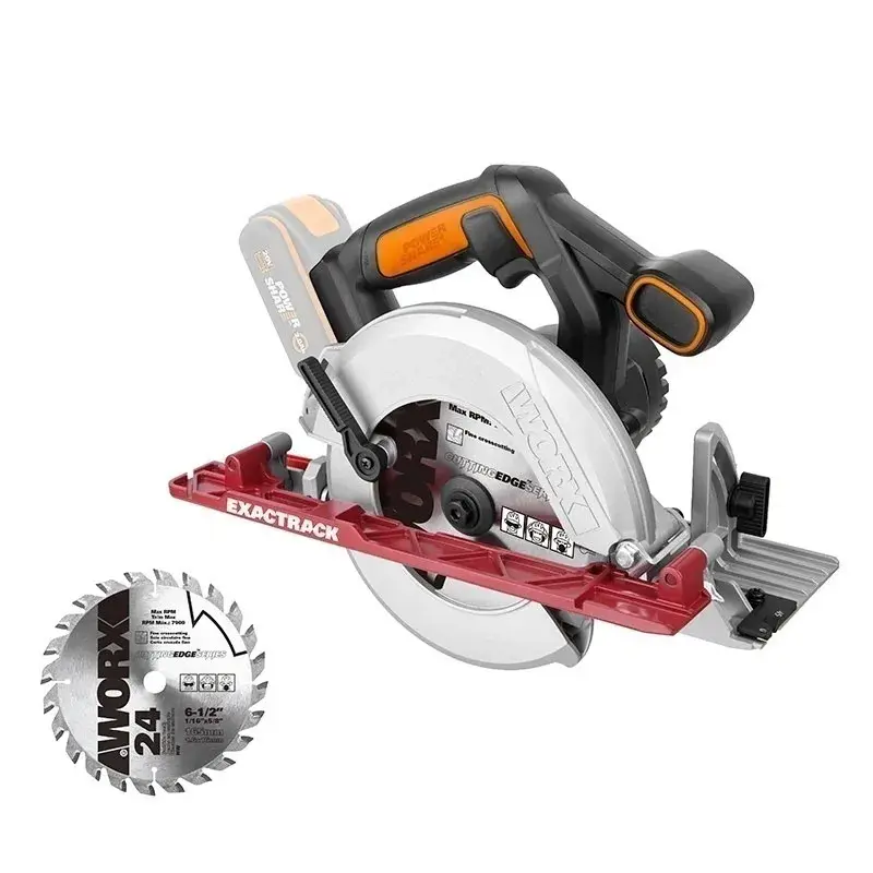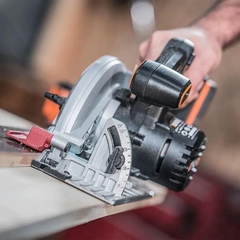 Аккумуляторная дисковая пила WORX WX530 — беспроводной инструмент для продольного и поперечного реза по прямой древесины и подобных материалов. Модель работает с режущим диском диаметром 165 мм с размером посадочного отверстия 16 мм. Глубина пропила достигает 55 мм при угле реза 90 градусов и 39 мм при угле 45 градусов.