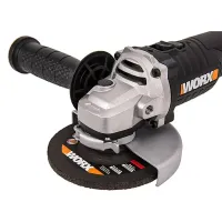 Тонкий корпус УШМ WORX WX812 удобно обхватывать даже в перчатках. Крепкий хват способствует уверенному ведению инструмента, что особенно важно при обработке маленьких заготовок.