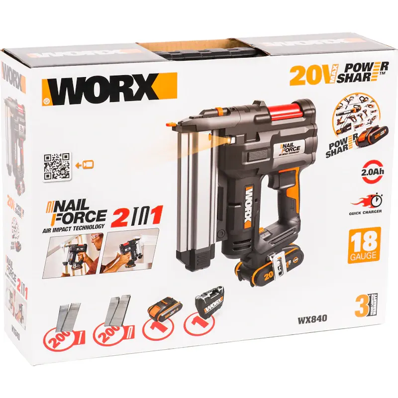 WORX WX840 аккумуляторный гвозде-скобозабиватель (1 x 2 Ач, ЗУ)