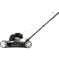 Легкая конструкция и проходимые колеса на подшипниках обеспечивают удобство работы даже на неровных газонах. В данной модели отсутствует травосборник, поэтому вам не придется заботиться о его опорожнении. Дефлектор бокового выброса подходит для скашивания высокой и густой растительности. Например, с целью приведения в порядок заброшенных территорий или на фермерских лугах для заготовки сена. Срезанная трава остается на поверхности и не путается под ногами.