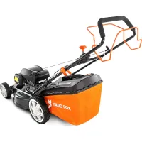 Машина отличается хорошей маневренностью, удобством управления и обслуживания. Самоходная система, большие колеса и вариатор скорости обеспечивают высокую производительность и комфортную работу. Несколько режимов скашивания дают возможность выбрать оптимальный способ ухода за газоном в зависимости от условий и предпочтений. Соединитель для подключения водопроводного шланга упрощает очистку деки и ножа бензиновой газонокосилки YARD FOX от налипшей травы. Двигатель отличается низким уровнем шума и вибрации, экономичным расходом топлива и масла.
