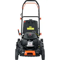 Переднее колеса диаметром 200 мм, задние —250 мм позволяют бензокосилке легко маневрировать даже на неровных участках и имеют хорошее сцепление с поверхностью. Антивибрационная рукоятка с мягкой накладкой создает дополнительное удобство при работе с газонокосилкой. Для более компактного хранения или при транспортировке рукоятка легко складывается.