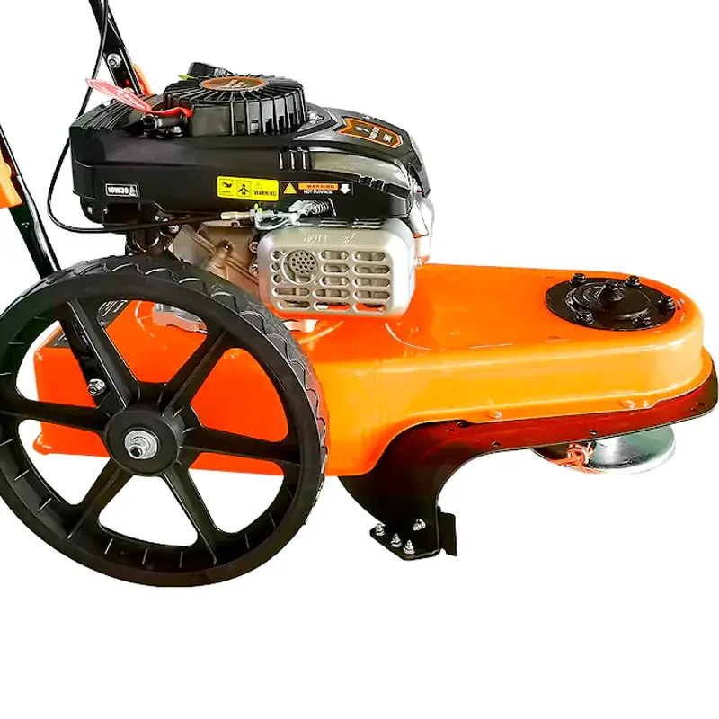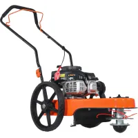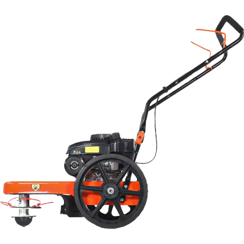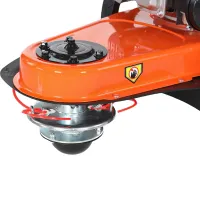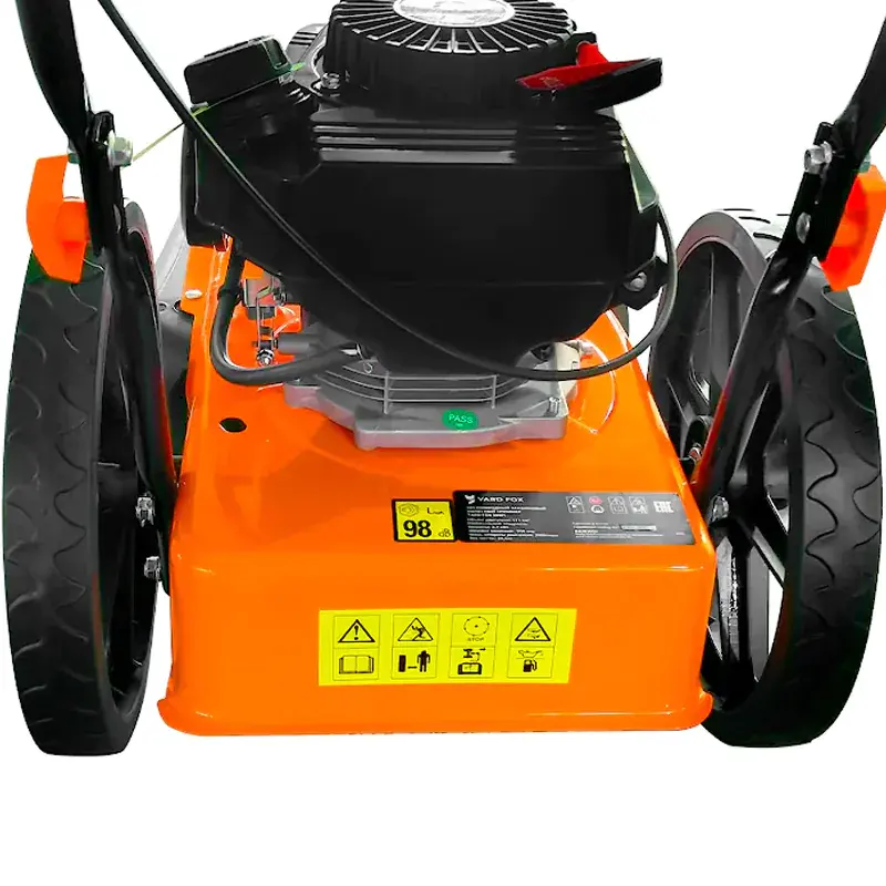 YARD FOX, наряду со своими косилками, гордится компактным триммером на больших колесах, который теперь не надо носить на себе, излишне напрягая руки и спину.