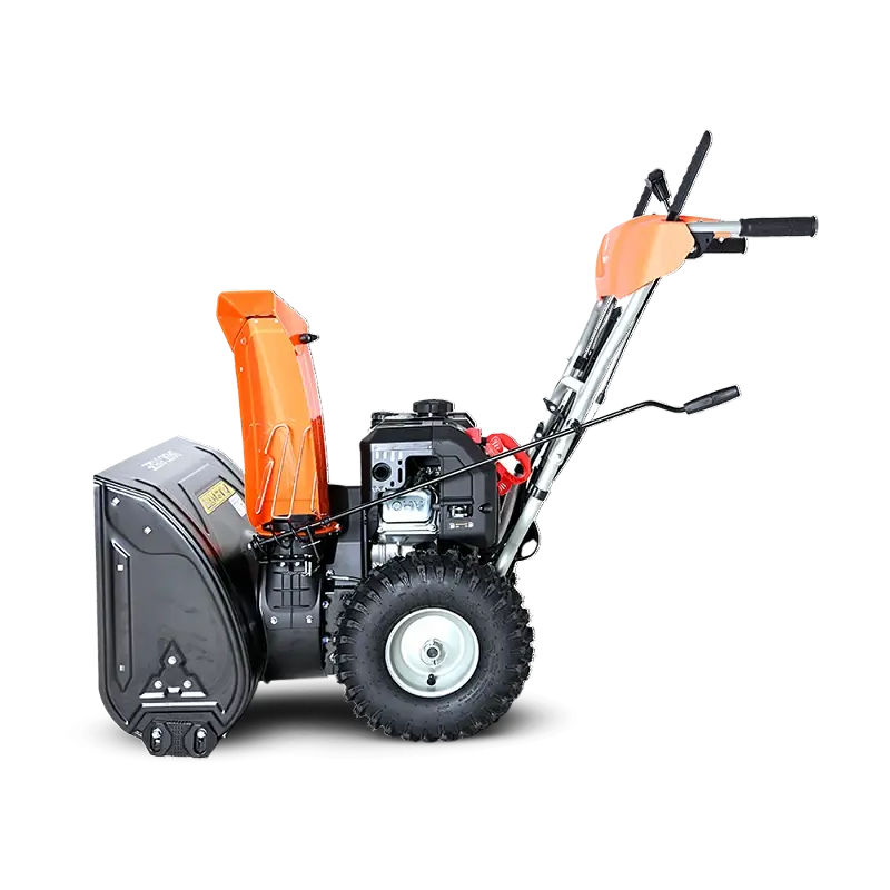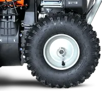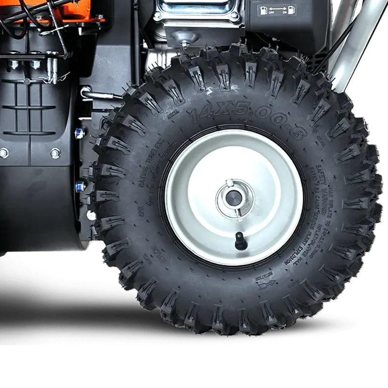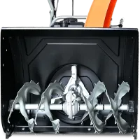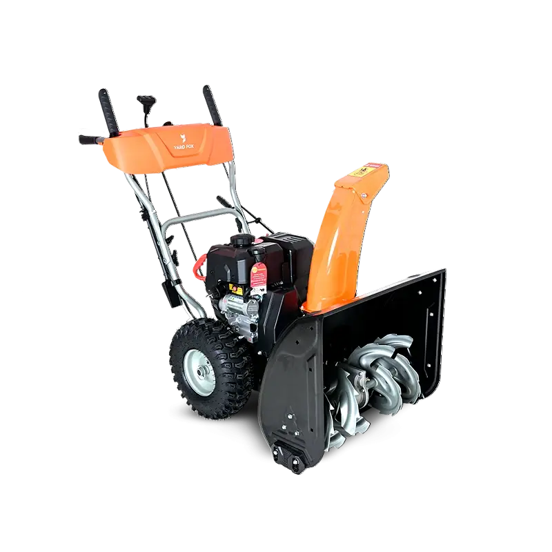 Снегоуборщик YARD FOX BASIC 6152E оснащен пневматическими колесами с глубокими протекторами, которые обеспечивают надежное сцепление с дорогой. Зазор над землей можно регулировать за счет перестановки опорных лыж на ковше. Это обеспечивает качественную очистку даже неровной поверхности. Снегоуборочная двухступенчатая система переработки снежной массы состоит из стального мощного шнека и крыльчатки, отбрасывающей снег на значительное расстояние.