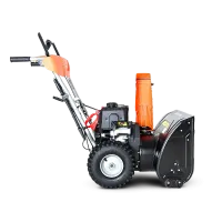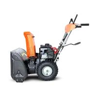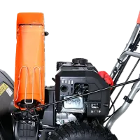 Зимний двигатель рассчитан на легкий запуск в морозную погоду. Рычаги, рукоятки и прочие элементы управления бензинового снегоуборщика YARD FOX удобно расположены под руками. Разгрузочный желоб можно поворачивать в диапазоне 180_ с помощью длинного рычага. Регулировка выполняется на ходу, без остановки машины. Переключатель скоростей позволяет выбрать комфортный темп перемещения в зависимости от условий уборки. Дальность выброса легко изменяется путем наклона козырька.