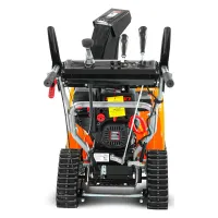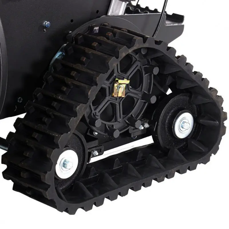 Гусеничная система снегоуборщика позволяет обеспечивать высокую сцепку с любой поверхностью – на скользком тротуаре, на холмистой местности, машина ведет себя уверено и нагло.