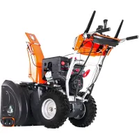 Эффективную и качественную уборку снега обеспечивает двухступенчатая система шнеков. Зубчатый шнек загребает и перемалывает снежную массу в крошку, которая затем выбрасывается с помощью крыльчатки через желоб. Расстояние выброса достигает 11 метров, а направление регулируется на угол до 180°.
