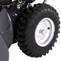 Все рычаги и кнопки для настроек выведены на переднюю панель и легко доступны, так что управлять машиной можно одной рукой. Для безопасной работы в метель или в сумерках предусмотрена яркая светодиодная фара. Большие пневматические колеса с глубоким протектором обеспечивают высокую проходимость и хорошую управляемость в различных условиях.