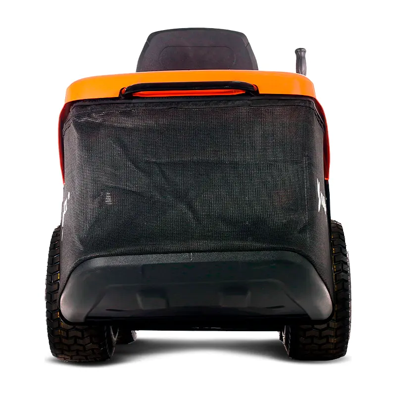 Комбинированный травосборник легко снимается и опустошается прямо с сиденья оператора. Объём 245 л позволяет дольше работать без перерывов.