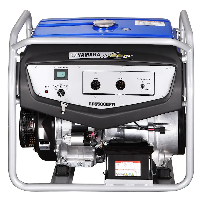 Бензиновый генератор Yamaha EF 5500 EFW предназначен для непрерывного питания бытовых приборов, которые находятся вдали от центральной сети. Агрегат представляет собой мощную однофазную электростанцию и относится к профессиональному классу.
