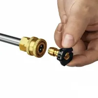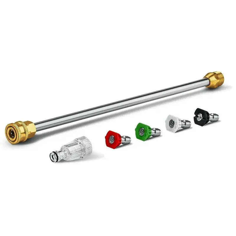 Фильтр воды предотвращает попадание грязи во внутреннюю систему. Четыре быстросъемные распылительные насадки позволяют выбрать наиболее подходящую форму струи для выполнения конкретной задачи по очистке поверхности или нанесения моющего средства. Шланг длиной 8 метров обеспечивает свободу перемещения. Для бесконтактной мойки активной пеной дополнительно можно приобрести пеногенератор.