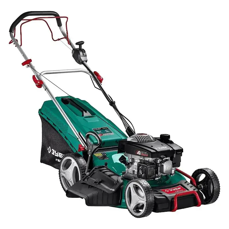 Функционал машины позволяет косить траву как с выбросом в сторону, так и с наполнением травосборника. Накопитель самоходной газонокосилки ЗУБР ГБС-510 оснащен ручкой, поэтому легко снимается. Благодаря тому, что он достаточно вместительный, не требуется часто выключать двигатель для того, чтобы вытряхнуть растительность. Следить за заполнением травосборника помогает специальный индикатор.