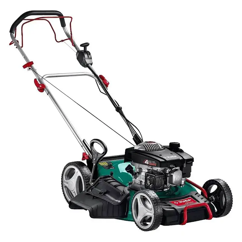 Бензиновая газонокосилка ЗУБР ГБС-510 с двигателем мощностью 4,8 кВт и шириной скашивания 42 см подойдет для стрижки и мульчирования травы на участке площадью 800 м2. Эта самоходная модель оснащена 7-ступенчатой системой регулировки высоты резки.