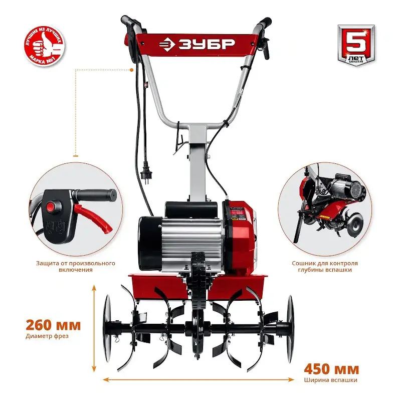 Ширина вспашки составляет 450 мм. Этого достаточно для быстрого выполнения необходимого объема работ.