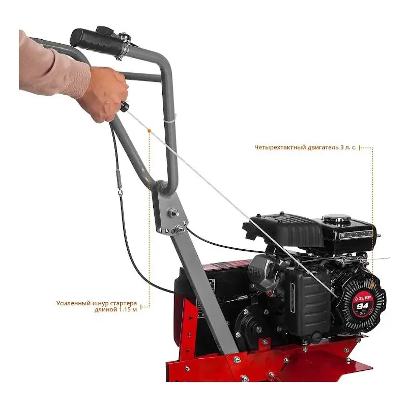 На рукоятку вынесены все элементы управления для быстрого доступа. Благодаря этому вы можете настраивать обороты двигателя при выполнении вспашки земли.