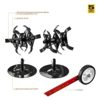 Дополнительные принадлежности к культиватору, идущие в комплекте, упрощают эксплуатацию: