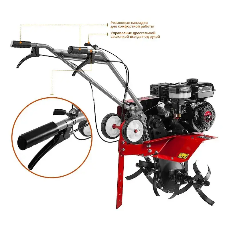 При помощи специальной ручки вы можете самостоятельно настраивать обороты двигателя.