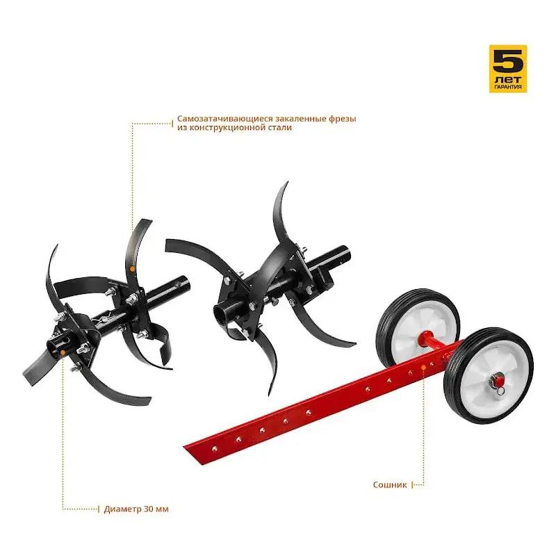 Культиватор поставляется с комплектом аксессуаров: