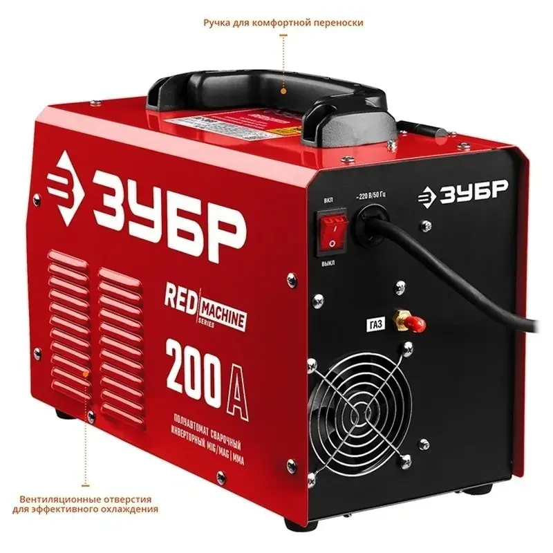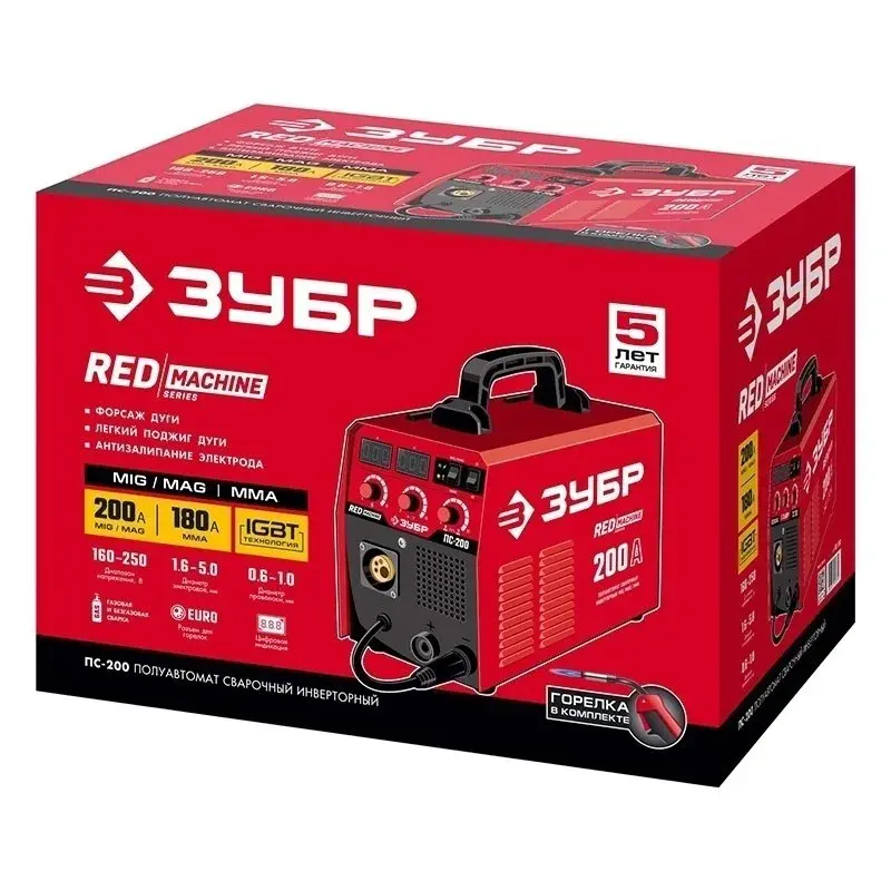 Сварочный инверторный полуавтомат ЗУБР ПС-200 с регулировкой тока от 30 до 200 А подходит для обработки алюминия, а также различных его сплавов. Модель позволяет использовать электроды диаметром от 1,6 до 5 мм. Для более простой и эффективной работы предусмотрен дисплей, а также дополнительные технологии: VRD, Hot start, Anti-stick, Аrc force.