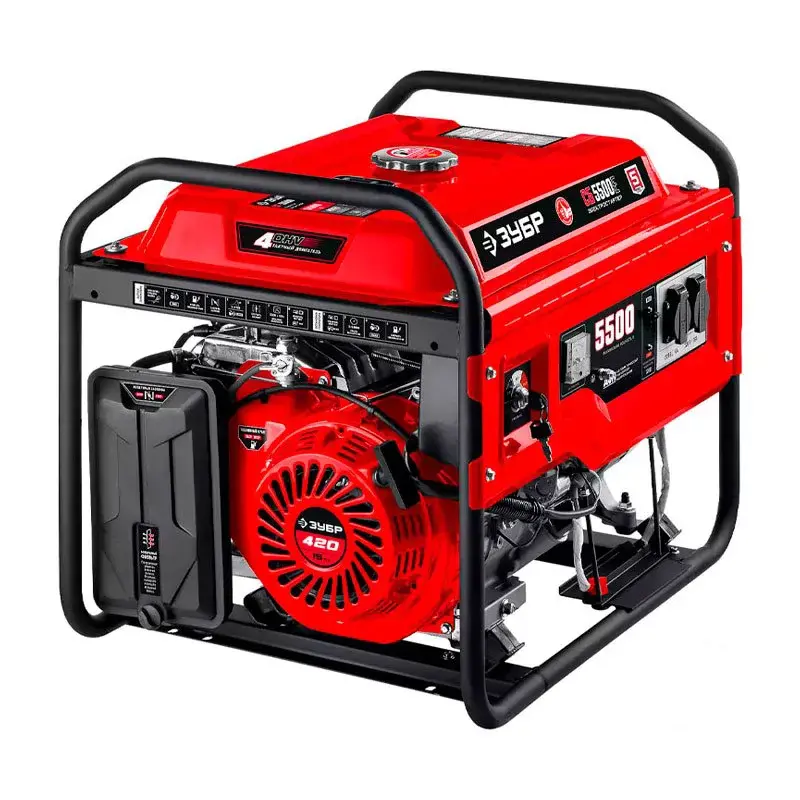 Бензиновый электрогенератор ЗУБР СБ-5500Е, предназначен для обеспечения электрической энергией потребителей в отсутствии электрической сети, а также для использования в качестве резервного или аварийного источника электрической энергии. Мощный генератор, который пригодится не только в загородном доме, но и в мастерской, и на строительной площадке, и вообще везде, где нет стационарного электричества, но нужно иметь работающую технику и инструмент.
