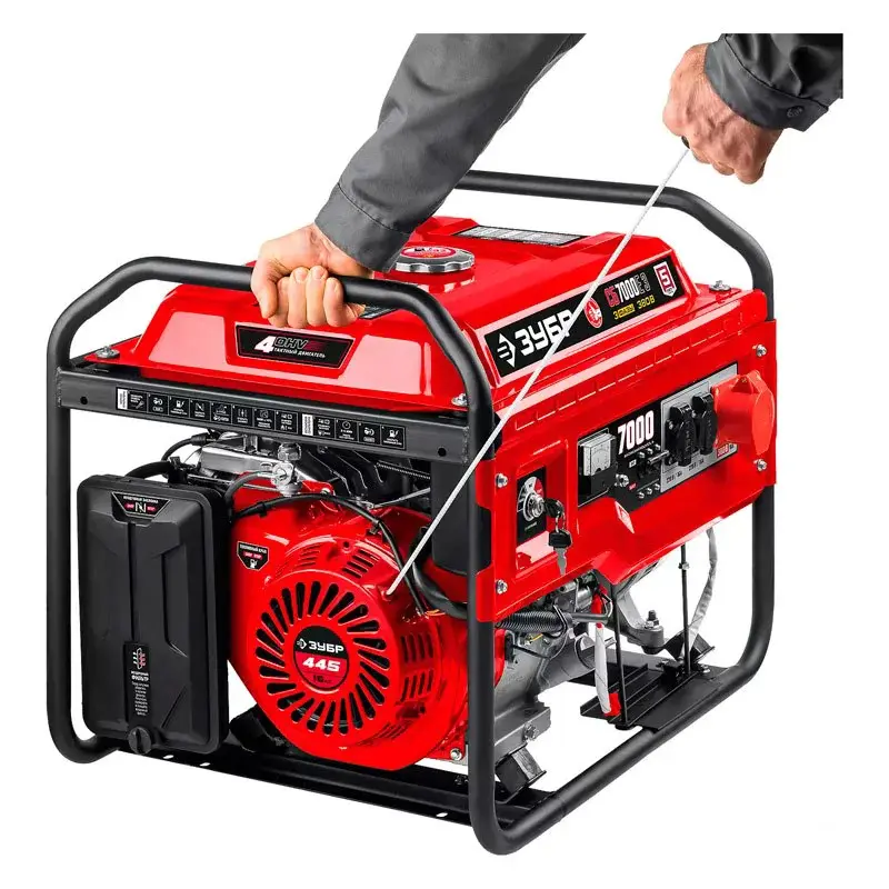 Бензиновый электрогенератор ЗУБР СБ-7000Е-3, предназначен для обеспечения электрической энергией потребителей в отсутствии электрической сети, а также для использования в качестве резервного или аварийного источника электрической энергии. Оптимальный по мощности генератор с возможностью подключения трехфазного потребителя электроэнергии.