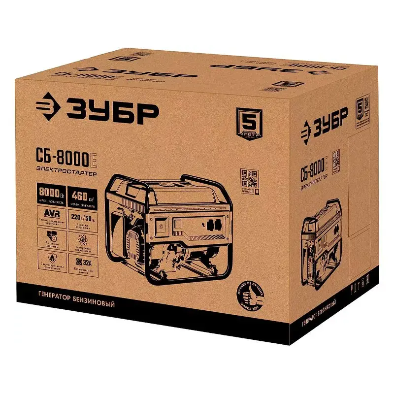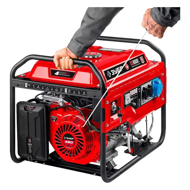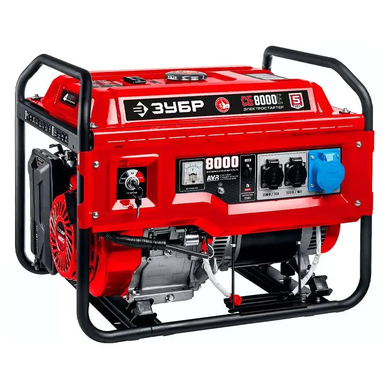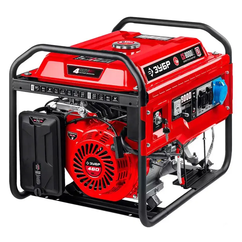 Бензиновый электрогенератор ЗУБР СБ-8000Е, предназначен для обеспечения электрической энергией потребителей в отсутствии электрической сети, а также для использования в качестве резервного или аварийного источника электрической энергии. Генератор, способный обеспечить энергией весь загородный дом, мастерскую или небольшую строительную площадку. 4-тактный двигатель - простота использования и обслуживания, длительный срок службы, отличные экономические и экологические показатели.