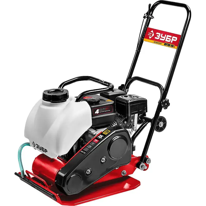 Бензиновая виброплита ЗУБР ВПБ-15 А предназначена для уплотнения сыпучего строительного материала на глубину до 300 мм. В комплект входит бак для воды объемом 11 л. Использование воды позволяет избежать прилипания асфальта к рабочей плите.