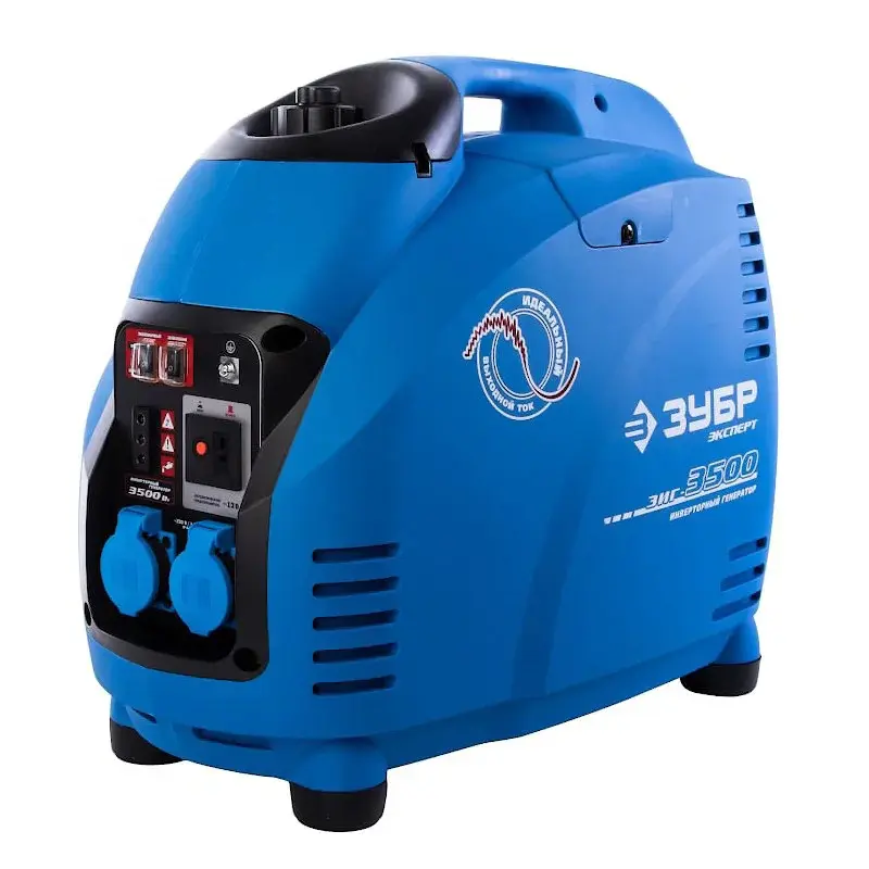 Инверторный генератор ЗУБР ЗИГ-3500 мощностью 3500 Вт подходит для использования как на стройке, так и в бытовых условиях. Бак для топлива обладает объемом 5,7 л, что позволяет оборудованию непрерывно работать в течение 4 часов.