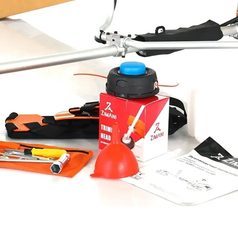 Профессиональный бензиновый триммер ZimAni 143RII легко косит газон, высокую траву, крупные сорняки, молодую поросль деревьев или кустов.