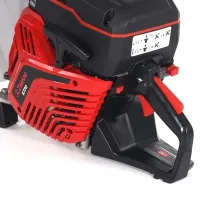 Другие важные компоненты бензореза - это пылезащищенный стартер, который повышает надежность и срок службы продукта, декомпрессионный клапан для облегчения запуска бензореза. Идеальный инструмент для резки бетона и камня при реконструкции, обновлении и строительстве зданий. Он также идеально подходит для создания небольших отверстий и подгонки оконных и дверных проемов и резки труб, асфальта и металлов.