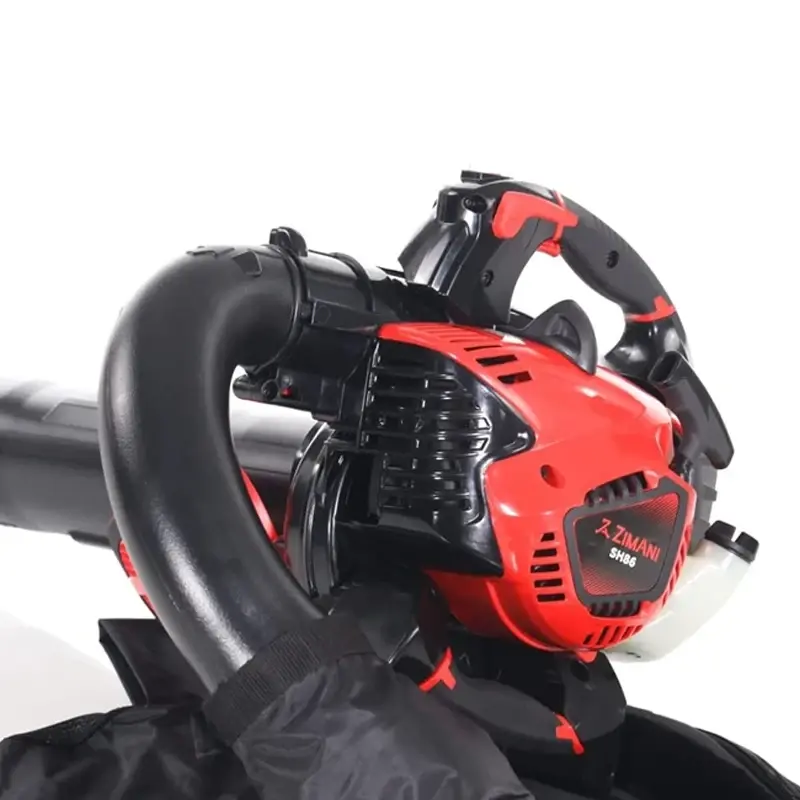 Садовый пылесос/воздуходувка бензиновая ZimAni SH 86 с очень мощным воздушным потоком для очистки больших площадей от листвы, скошенной травы или очистки покрытых снегом поверхностей. Воздуходувка бензиновая ZimAni SH 86 оснащена надежным 2-тактным двигателем мощностью 1.1 л.с.. Объем топливного бака составляет 0,44 л, этого количества хватит на выполнение продолжительных работ. Специальный демпфирующий элемент в ручке пускателя расширяется соответственно силе тяги, и таким образом запуск происходит равномерно, без толчков.