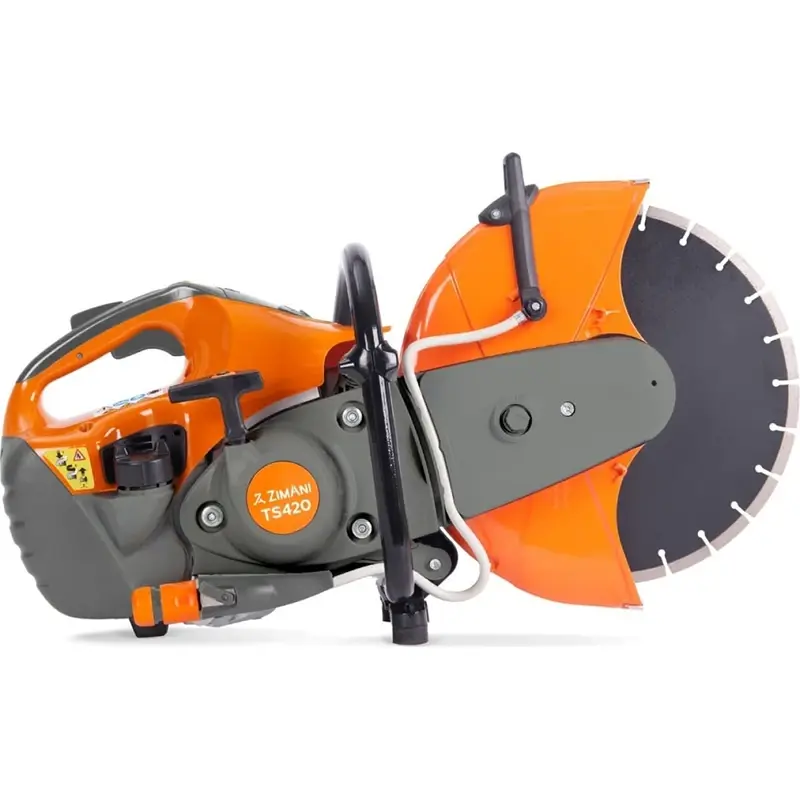 Бензорез ZimAni TS-420 — абразивно-отрезной инструмент, предназначенный для резки стали, бетона, камня, асфальта и керамики. Удобно расположенная крышка топливного бака дает возможность быстро дозаправить инструмент, что позволяет избежать простоев в работе. Кнопки управления удобно расположены на рукоятке. Благодаря специальной системе снижения вибрации достигается высокий уровень резки.