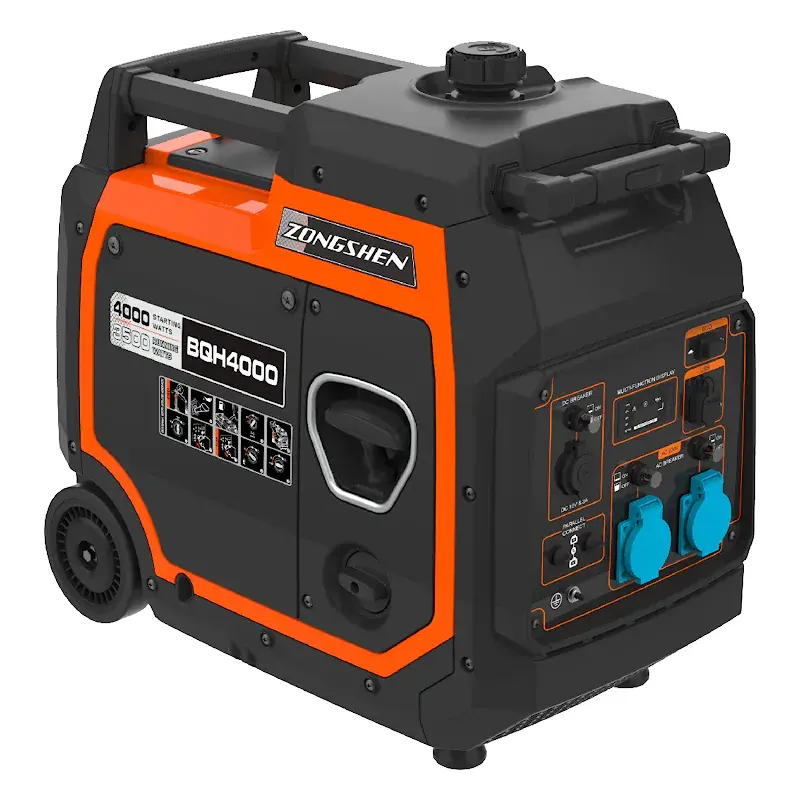 Бензиновый инверторный генератор Zongshen BQH 4000 предназначен для питания однофазных потребителей суммарной мощностью до 3,6 кВт. Для простого перемещения по рабочей площадке предусмотрены транспортировочные колеса.