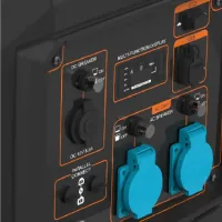 На панели управления размещены розетки на 220 В для подключения бытовых приборов или электроинструмента. Для защиты от пыли и грязи во время хранения они оснащены крышками. Помимо этого, рядом расположен выход на 12 В, который используется для подзарядки автомобильного аккумулятора.