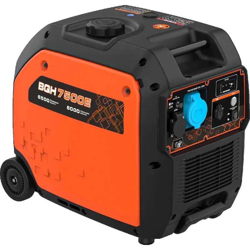 Бензиновый генератор Zongshen BQH 7500 E пригодится на стройплощадке, в частном доме или небольшом предприятии для организации автономного питания потребителей однофазным током. Передвижная электростанция с инвертором и внутренним стабилизатором напряжения снабжает устройства качественной энергией. К двум розеткам на 16 А и 32 А можно подключать нагрузку общей номинальной мощностью 6 кВт, а к выходу постоянного тока — 12-вольтовые устройства или автомобильный аккумулятор.