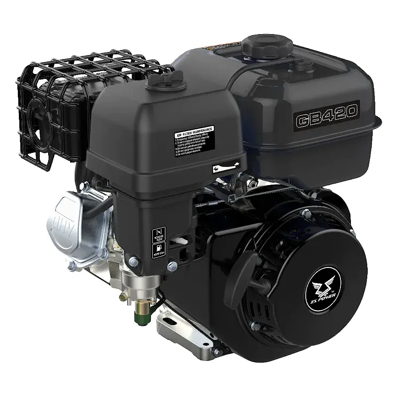 Двигатель бензиновый Zongshen GB 420 имеет рабочий объем 420 куб. см. и максимальную мощность 12,2 л.с. Устанавливается на культиваторы, измельчители мусора, мини-тракторы, генераторы, мотопомпы и прочую садовую технику.