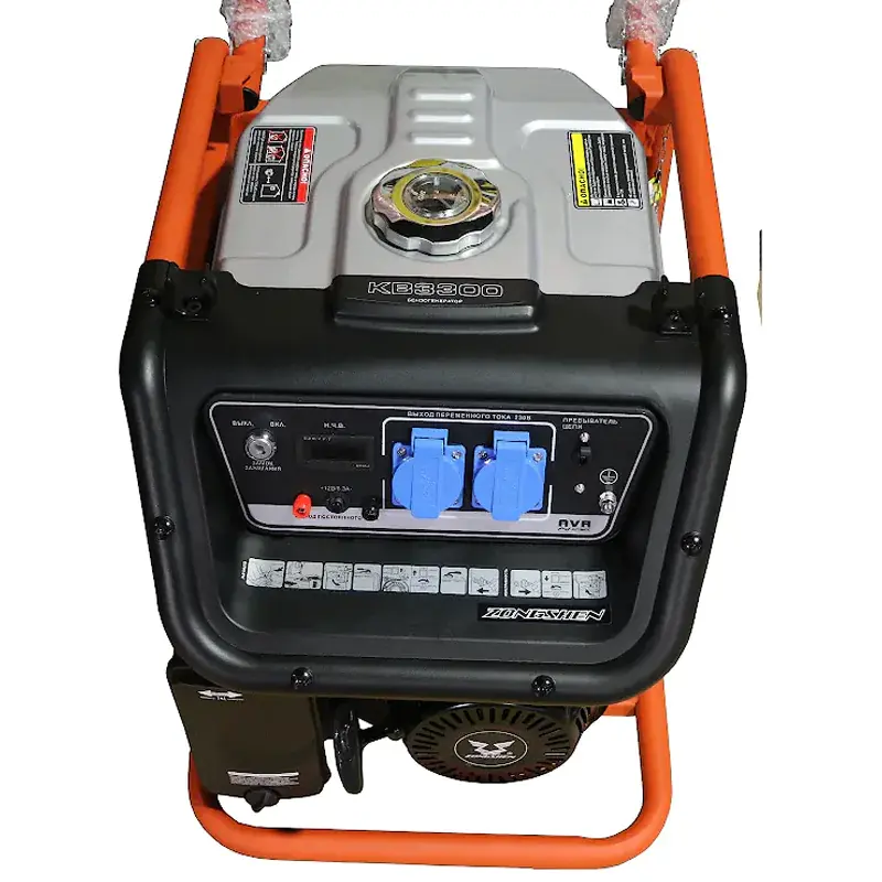 Компактный и мобильный генератор Zongshen KB 3300 оборудован колесами и складной ручкой для удобства транспортировки и хранения. Автоматический регулятор напряжения контролирует и корректирует выходные параметры в сторону повышения или понижения. Прерыватель цепи на лицевой панели позволяет быстро отключить ток в экстренном случае. Электрические розетки снабжены защитными крышками от влаги и пыли. Металлический топливный бак оснащен указателем уровня топлива, благодаря которому можно вовремя провести дозаправку.