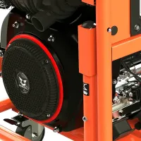 Несмотря на большой вес генератора – 225 кг, перемешать его не сложно. Для этого на раме предусмотрено 4 колеса и складная ручка. Защитить двигатель от поломок помогает система контроля за уровнем масла. При его недостатке в картере цепь зажигания разомкнется и мотор остановится.