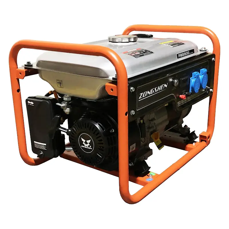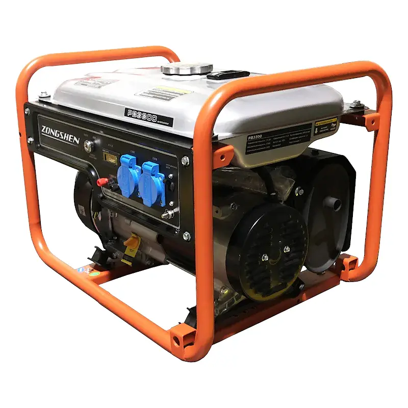 Бензиновый генератор Zongshen PB 3300 максимальной мощностью 3 кВт служит в качестве автономного источника электроэнергии переменного однофазного тока напряжением 220 В для бытовой техники, электроинструментов или осветительных приборов. Передвижная электростанция работает от четырехтактного бензинового двигателя мощностью 7 л.с. с воздушным охлаждением и ручным стартером.