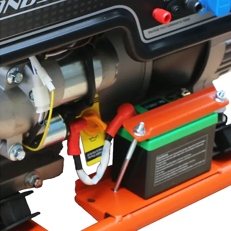 Двигатель легко заводится поворотом ключа в замке зажигания. В случае разряда батареи можно воспользоваться ручным стартером. На лицевой панели устройства расположены две розетки напряжением 220 В на 16 А и на 32 А для подключения потребителей. Выход постоянного тока на 12 В/8,3 А служит для подзарядки автомобильных аккумуляторов. В случае перегрузки или короткого замыкания происходит автоматическое выключение бензинового генератора Zongshen. Вместительный бак емкостью 25 литров обеспечивает продолжительную работу в течение 8 часов.